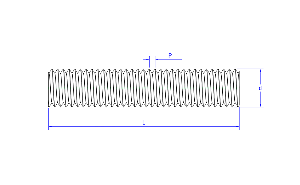 | Charakterystyka wyglądu | Długi pręt, często cylindryczny, gładki lub obrobiony powierzchniowo, gwint na całej długości |